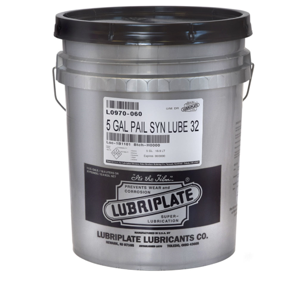 LUBRIPLATE SYN LUBE ISO VG Fluids 22 through 100 are high performance, zinc-free synthetic fluids for industrial machine applications. These fluids are 100% synthetic based products formulated with a combination of PAO and ester technology. LUBRIPLATE SYN LUBE Synthetic Fluids are available in (5) ISO Viscosity Grades (ISO VG 22, 32, 46, 68, 100) and recommended for many types of rotary screw and rotary vane air compressors. These synthetic fluids are excellent for high temperature bearing and chain applications as well as situations striving for improved efficiency and extended drain intervals. They are also excellent products for centrifugal air compressors, all types of hydraulic systems and turbine oil applications. LUBRIPLATE SYN LUBE Synthetic Fluids provide several advantages over mineral oil based products.